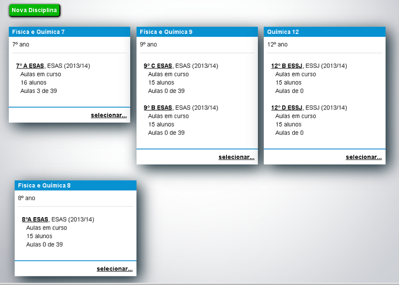 A plataforma permite-lhe abrir as suas disciplinas por ano curricular e gerir as matérias específicas de cada ano.