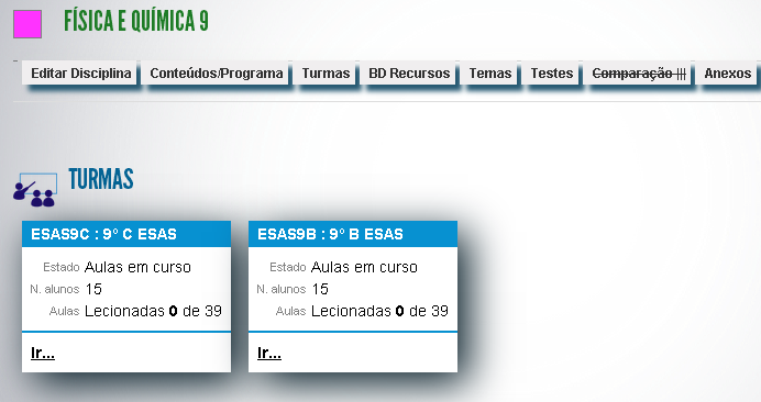 Estes conteúdos são independentes do número de turmas ou dos estabelecimentos de ensino onde leciona. Agora, ao organizar a disciplina na plataforma, irá obter logo essa visão para todas as turmas que lecionar e adaptar os conteúdos a cada turma em particular.