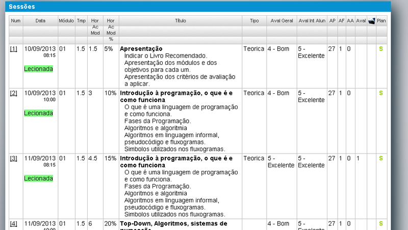 A aula já está prevista no plano da disciplina? Vem na sequência da aula anterior? É de caráter mais teórico ou é de caráter mais prático? Quais são os conteúdos? Que recursos vão ser necessários? Como vão ser geridas as presenças? E o sumário?