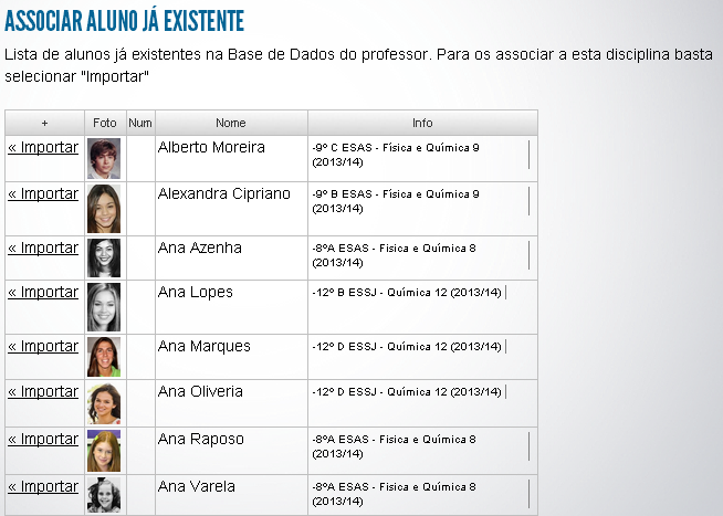 Pode manter na plataforma uma lista dos seus alunos por turma para durante o ano gerir toda a informação associada.